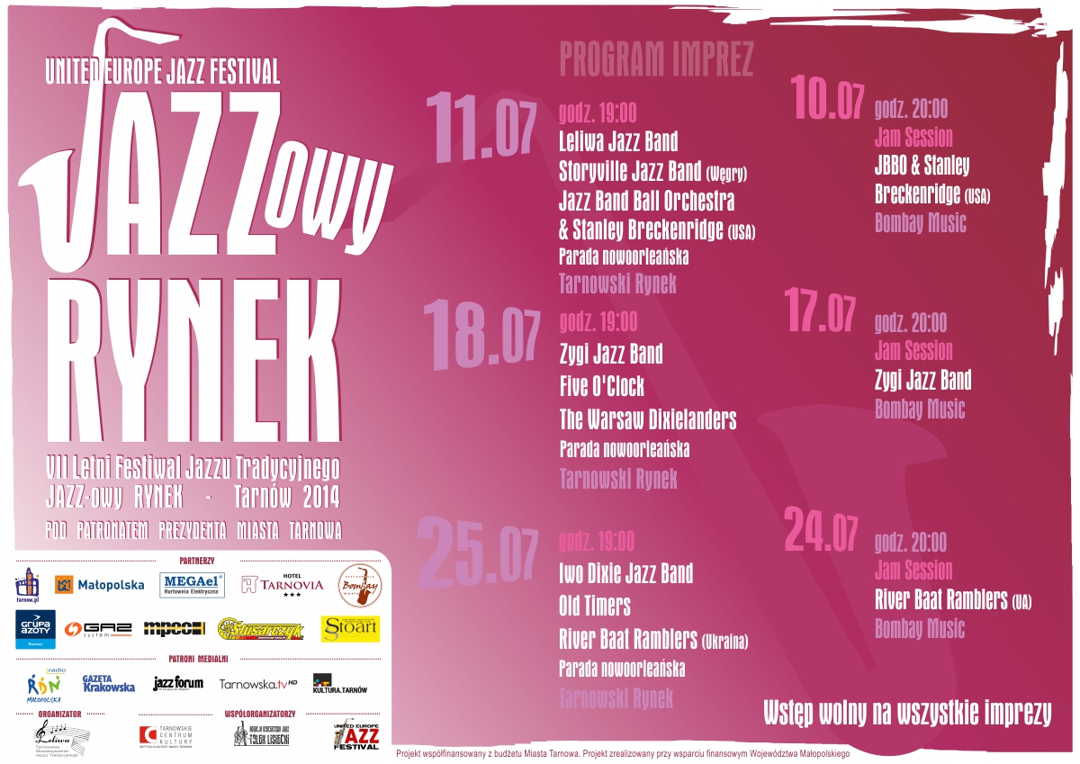 Jak co roku Tarnowskie Stowarzyszenie Jazzu Tradycyjnego "Leliwa" realizować będzie 2 zadania: Letni Festiwal Jazzu Tradycyjnego "JAZZ-owy Rynek - Tarnów 2014" oraz "Czwartek jazzowy" - całoroczny cykl spotkań z jazzem tradycyjnym. Mamy nadzieję pozyskać dotacje z budżetu Miasta Tarnowa oraz Województwa Małopolskiego, co jednak nie wystarczy na zapewnienie odpowiednio mocnej obsady koncertów. Mile widziani sponsorzy.